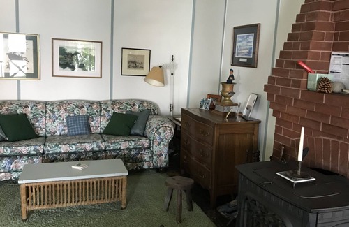 This section, typical of its time, was built as a summer house only and does not have central heat or air. With open doors and windows, the lake breezes provide ample cooling on all but the hottest nights (when fans, sleeping on the porch, or a nighttime dip might be called for!) A high-efficiency wood stove, located in the living room, and radiant electric heaters provide heat as needed to this part of the house in May and October.