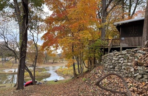 Unwind at this historic cabin on the river at Camp Miramichee Falls in Hardy, AR. This original stone cabin was built in 1940, used by the Zonta Foundation, then by YWCA Camp Miramichee until 1979. Its history and craftsmanship make it a unique find to spend a relaxing getaway. Stone floors and walls keep it cool in the summer. The original stone fireplace is cozy in the winter. Though the modern central air and heat are a nice touch!