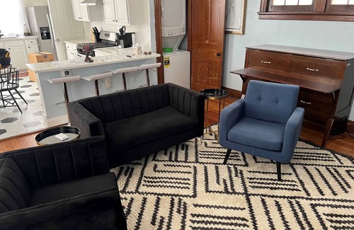 As you step inside this stunning home, you'll immediately notice the perfect blend of historic details and contemporary finishes. Every inch of this space has been thoughtfully designed to create a chic and comfortable environment for you to relax. Sink into one of the stylish armchairs and catch up on your favorite movies or shows on the large smart TV, or get adventurous in the modern kitchen and whip up delicious meals with the stainless steel appliances and cookware at your disposal. Whether you're in the mood for casual barstool seating or a more traditional experience at the dining table, this home has it all. And if you're feeling like exploring the neighborhood, there are plenty of dining options just minutes away!