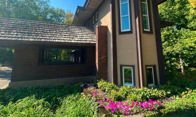 Experience the charm and history of Wayzata in this unique Frank Lloyd Wright Carriage House. Situated on a sprawling 6-acre estate, the house is enveloped by lush woodlands, offering guests a tranquil retreat from the hustle and bustle. Despite its secluded setting, it's just a stone's throw away from the shimmering Lake Minnetonka and the vibrant downtown Wayzata, putting you close to local eateries, boutiques, and outdoor activities.