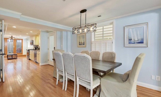 This charming 3-BR, 2.5-BA townhome is just a 1/2-block from the city dock and is a luxurious vacation getaway in the heart of the historic district of Annapolis. Built in 1881, this townhome has been completely renovated, with beautiful wood floors, an open floor plan and every modern convenience.