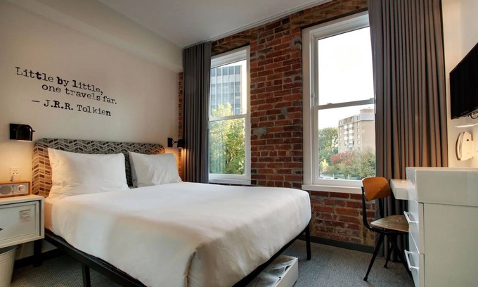 Step into a world where history meets modernity in the heart of Washington D.C! We are a micro-hotel, known for smaller rooms yet bigger, more buzzworthy experiences. We embrace the excitement of urban life while providing a relaxing retreat. Your room showcases the best of both worlds: compact yet comfortable. Enjoy stunning city views and unwind on our terrace after a busy day exploring nearby landmarks.