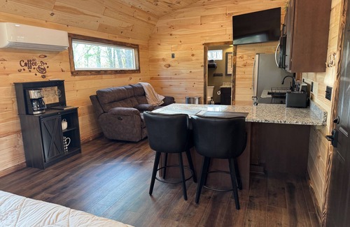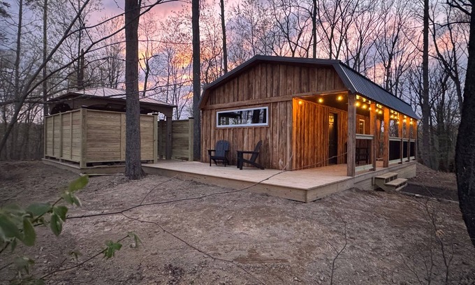 This intimate cabin offers the perfect escape for couples seeking tranquility and adventure. Spend your days exploring nearby Cantwell Cliffs Park or Rock House, hiking the 20 acres of private trails on the property, or simply relaxing on the deck with a morning coffee. In the evenings, unwind by the solo fire pit under a star-filled sky.
