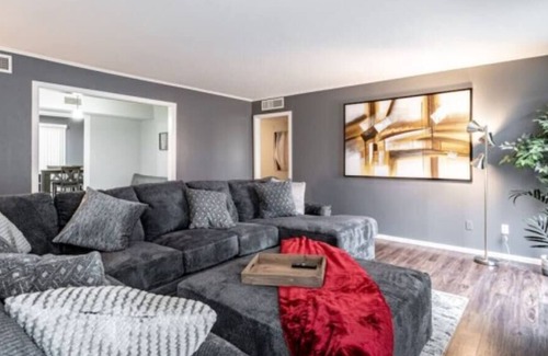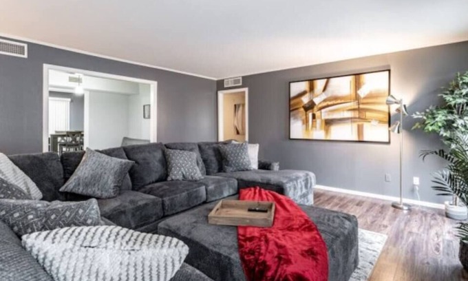 Enjoy your next stay at Hoff Gardens. This downstairs unit is one of four fully furnished apartments in a complex only 1.5 miles from Texas Tech University. This unit has been completely remodeled inside and has all the amenities to make you to feel right at home. Enjoy the comfortable furniture, large smart TVs in every room, and seasonal pool access! With so much space, there is plenty of room for your whole party. Perfect for short and long stays.