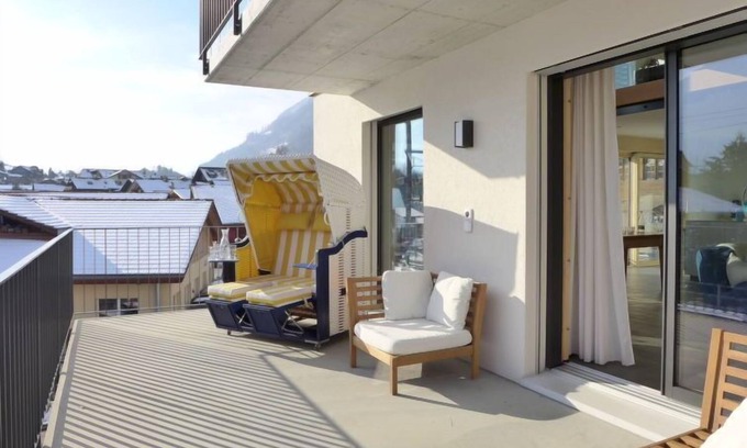 "Hofstatt 4B", 3-room maisonette on 2 levels, on the upper floor. Spacious and bright, comfortable and cosy furnishings: open large living/dining room 40 m2 with panoramic window with dining table, cable TV and digital TV. Exit to the balcony, to the terrace. Large, open kitchen (oven, dishwasher, 4 induction hot plates, toaster, microwave, freezer, electric coffee machine, Capsules for coffee machine (Nespresso) extra, raclette grill, cooking island, fondue Set (cheese)). Sep. WC. Upper floor: 1 room with panoramic window with 1 double bed (2 x 90 cm, length 200 cm). Exit to the balcony. 1 room with 2 beds (90 cm, length 200 cm). Shower/WC. Underfloor heating. Parquet floors. Large balcony, south facing position, large terrace, west facing position. Terrace furniture, balcony furniture. Very beautiful view of the lake, the mountains and the resort. Facilities: washing machine, iron, children's high chair, baby cot for up to 2 year olds (extra), hair dryer. Internet (WiFi, free). Reserved parking, garage (2 cars). Please note: suitable for families. Non-smoking house. Smoke alarm, fire extinguisher.