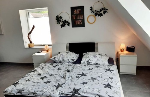 The holiday home offers enough space for up to 6 people and has 2 bedrooms, 1 living room and dining room including a kitchen. One bedroom is also equipped with a sofa bed. A baby cot can be added. The two bathrooms have walk-in showers. There is also a urinal on the ground floor. The holiday home is structurally separated from the adjacent house and has a separate entrance A washing machine is available upon request. There is a parking space at the holiday home.