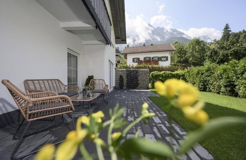 The location in the Obergrainau district offers perfect opportunities for a variety of activities at any time of the year: long walks and hikes at the bottom of the Zugspitze, mountainbike tours past crystal-clear lakes and blooming mountain meadows, as well as unlimited skiing and snowboarding fun in winter. A cross-country ski trail is located in the immediate vicinity and the ski areas „Zugspitze" and „Garmisch Classic" entice with varied slopes and unique impressions.