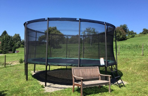 The well-equipped holiday apartment Lea is located in Schienen, a village near Öhningen, close to the Swiss border and the shores of Lake Constance. The 90 m² apartment consists of a living room with sofa bed, a well-equipped kitchen with dishwasher, two bedrooms, and a bathroom, offering space for up to six people. Amenities include Wi-Fi, a washing machine, a TV, a baby cot, and a high chair. Start your day with a coffee on the sunny balcony and relax in the spacious garden, which you can share with other guests. The lush garden features a seating area where you can have breakfast or spend your evenings enjoying grilled dishes. For children, there is a playground with swings, a trampoline, and a table tennis table. You can reach a bus stop in 4 minutes (350 m) on foot, and a restaurant in 8 minutes (650 m). After a 6-minute drive (4.2 km), you will reach Öhningen, where you will find supermarkets, bakeries, and the nearest beach. There you can swim and enjoy the beautiful lake and mountain panorama. In Wangen, 10 minutes by car (7 km) away, you will find a pharmacy and more swimming opportunities. The hilly area around Schiener Berg is ideal for outdoor activities such as hiking or cycling, with many routes right on your doorstep. The charming lakeside town of Radolfzell is 16 minutes by car (11 km) away, the World Heritage Site Reichenau Island is 35 minutes (32 km) away, and Konstanz with its picturesque city center is 40 minutes (33 km) away. Parking is available. Pets are allowed on request.