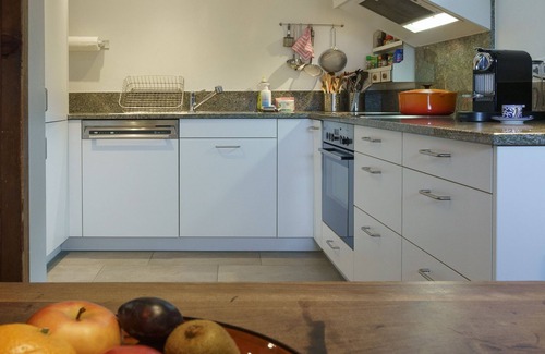Inside, the house offers two fully equipped flats with every comfort to make your stay as pleasant as possible. The flats are designed for 5-7 people and 2-5 people respectively and each has a fully equipped kitchen with a fondue and raclette oven, TV, books and information brochures for adults and children. A terrace (flat on the ground floor) or a balcony (flat on the 2nd floor) complete the interior, with the latter offering a wonderful view of the lake and the surrounding countryside.