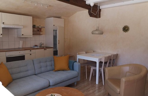 Sunny and bright charming 3 1/2 room flat on the 1st floor, centrally and quietly located with balcony (table, chairs and parasol (summer) beautiful view of the mountain La Margna. There is free WLAN access in the flat. The open-plan kitchen is well equipped with ceramic hob, dishwasher, Dolce Gusto capsule coffee machine and mocha pot with powder, fondue set, raclette oven for 2-4 persons on request. Bathroom with shower cubicle and towelling per person with bath mat. One bedroom with double bed 160 x 200, the other with two single beds 90 x 200. Both bedrooms have large built-in wardrobes and plenty of storage space. Free car park in front of the house. Shared use of the garden (deckchairs, table available).