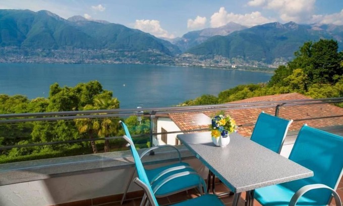Beautiful flat house above Vira in a quiet and sunny location. Panoramic view of Lake Maggiore. The bus stop Scesana number 326, 330 is only a few metres away. Our guests also have access to a fitness centre, a pool with a well-kept garden, sun loungers, a children's playground, table tennis and chess.