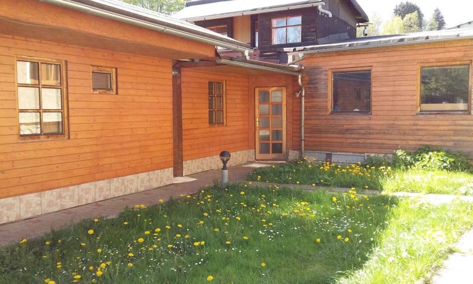 The holiday apartment is furnished in a functional style. Available for shared use: children's playground, barbecue facilities, pavilion and garden furniture. Sauna shared use with CSRRIG387 and CSRRIG388 and CSRRIG386.LocationSvoboda nad Úpou, 580 m above sea level. The holiday apartement is located on a enclosed garden plot with meadow and trees, bordered by a fence. The landlord lives in a separate building on the property. On the ground, the apartments CSR RIG 386 (12 people) and CSR RIG 387 (4 people) are located next to the house. The house is located on the road between Trutnov and Pec pod Snezkou, above the river Upa. Parking is available on the property. Parking on the enclosed yard for common use. Specialelectric heating.Facilities: internet access (WLAN). TV reception takes place via satellite. WellnessSauna. Leisuretable football. Dogsallowed, EUR 7.00/pet per day. DistancesShopping 1000 m, restaurant 1000 m, town center 1000 m. indoor swimming pool, sauna, discotheque, cinema, doctor, pharmacy, bank each 10 km in Trutnov. Bowling 1000 m. Excursions to Adrspach rocks 40 km. Safari Zoo Dvur Kralove 25 km. In summer: Bathing possibility 3 km in Mladé Buky. horse riding in 150 m. fishing in Fluß Upa 50 m. golf in Mladé Buky 1500 m. Good walking and cycling opportunities. In winter: Ski lift 800 m in Svoboda nad Úpou. Ski area 3 km in Jánské Lázně (Cerna Hora - Janske Lazne). Svoboda nad Úpou: ski rental, ski school trail 200 m. Ski center Pec pod Snezkou 15 km. DivisionHoliday apartment, 2 floors, 2 rooms (including 1 bedroom), 40 sqm, in total 4 beds (including 2 additional beds). Room