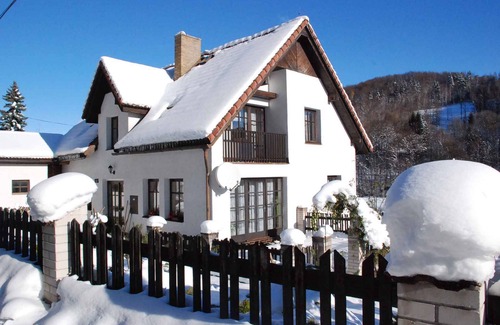 The holiday apartment is located in a detached single-family home. The property is located in a residential area. Available for use: barbecue facilities, terrace and campfire site.LocationSvoboda nad Úpou. The holiday apartement is located on a garden plot. The landlord lives permanently in the house, but uses a seperate entrance. Parking is available in a garage and on the street in front of the house. Specialcentral heating. PoolAll pools are available for shared use. Outdoor pool (usable from early July to end of August, 3 m x 4 m, depth 1,2 m). Dogsnot allowed. DistancesShopping 400 m, restaurant 400 m, town center 400 m. sauna in Svoboda nad Úpou 400 m. indoor swimming pool in Trutnov 12 km. Bowling 500 m. In summer: swimming pond 5 km in Mladé Buky. In winter: Ski lift 1500 m in Mladé Buky. Ski area 3 km in Jánské Lázně (Cerna Hora - Janske Lazne). Svoboda nad Úpou: trail and ski rental, ski school each 400 m. ice skating in Trutnov 12 km. DivisionHoliday apartment, 1 floor, 2 rooms (including 1 bedroom), 50 sqm, in total 6 beds. RoomThe entrance to your holiday apartment is located on the ground floor. Bedroom with 4 single beds. Living/bedroom with 2 single beds. Kitchenette with electric stove, fridge and electric kettle. Bathroom with shower and WC. Terms of lease and pricesIncluded in the priceparking place, electricity, water, final cleaning, bed linen. Side costs-Costs on the spot:/Obligatory:local tax by local tariff.Deposit:EUR 150,-/object