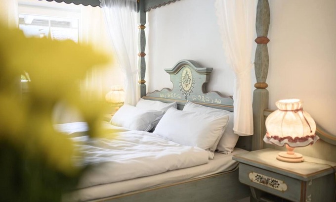 The approximately 62 m², modern furnished apartment for 2 persons is located on the 1st floor of the house and consists of a bright living/dining area with open kitchen, a bedroom with four-poster bed and a modern bathroom with shower. The large west-facing balcony invites you to enjoy the view of the mountains from morning to night.