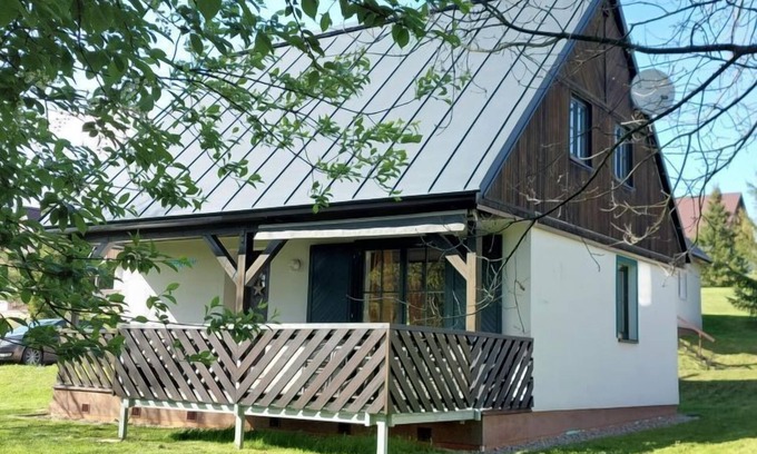 Čistá v Krkonoších 2 km from Černý Důl: Child friendly, beautiful, comfortable holiday village "Holiday Hill 39", 500 m a.s.l surrounded by trees and meadows. 43 houses in the resort. On the outskirts, in a secluded, quiet, sunny position, 1.5 km from the lake, 3 km from the skiing area, in the countryside. For shared use: property 6 ha, meadow, swimming pool heated (9 x 4 m, depth 120 cm, seasonal availability: 15.May. - 30.Sep. pool opening hours: 09:00-20:00). Shower/WC in the pool area, table tennis, children's playground (swing, sandbox). In the complex: reception, central heating system. Parking (for 2 cars) at the house. Shop 2.5 km, grocery 2.5 km, supermarket 7.5 km, restaurant 1.6 km, pub garden 400 m, bus stop "Černý Důl, Čistá-pošta" 400 m, grass beach 1.5 km (small), indoor swimming pool 19 km. Golf course (18 hole) 14 km, tennis 2.5 km, sports centre 2.5 km, walking paths from the house, cycle lane 100 m, ski lift 3 km, chair lift 3 km, slopes 3 km, ski school 3 km, children's ski school 3 km, sled run 7 km, cross country ski track 100 m. Nearby attractions: Janské Lázně Spa 9 km, Vrchlabí 10 km, Aquapark Trutnov 25 km, Zoo Safari Dvůr Králové 29 km, Bozkovské jeskyně 37 km, Adršpašské skály 44 km. Well-known ski regions can easily be reached: Černý Důl 3 km, Herlíkovice 15 km, Pec pod Sněžkou 22 km. Well-known lakes can easily be reached: Čistá 1.5 km, Vrchlabí 9 km. Hiking paths: Sněžka 25 km.