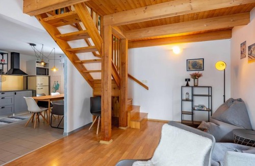 4-room house 100 m2 on 2 levels. Bright, comfortable and cosy furnishings: open living room with satellite TV (flat screen). Exit to the terrace. Kitchen (4 hot plates, dishwasher, toaster, kettle, microwave, freezer, grill, electric coffee machine) with dining table. Sep. WC. Upper floor: 3 rooms, each room with 1 double bed. Bath/WC. Small terrace. Terrace furniture, barbecue. Facilities: washing machine, dryer, children's high chair, baby cot. Internet (WiFi, free). Please note: suitable for families. Non-smoking house. Maximum 2 pets/ dogs allowed.