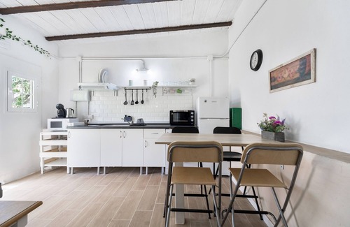 The holiday home Casa limonero with step-free access and interior is located in Chiclana de la Frontera and is the ideal accommodation for a relaxing getaway. The 30 m² property consists of a living room with a sofa bed for 2 people, a fully-equipped kitchen, 1 bedroom and 1 bathroom and can therefore accommodate 4 people. Additional amenities include high-speed Wi-Fi (suitable for video calls) with a dedicated workspace for home office, a smart TV with streaming services, air conditioning as well as a washing machine. This vacation rental offers a private outdoor space featuring a pool, garden, terrace, barbecue, and outdoor shower.