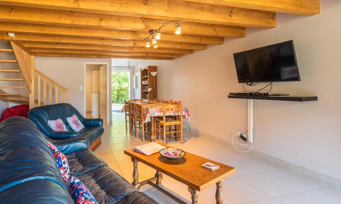 The "Chèvrefeuille" gîte combines rustic charm and modern comfort with its exposed beams and generous spaces.