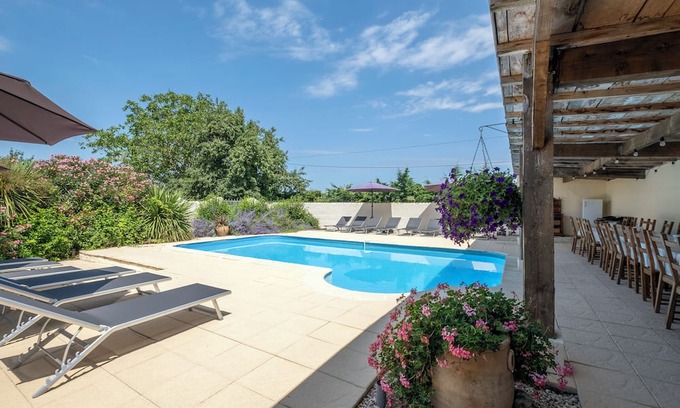 Holiday Home 'Domaine Chez Les Rois' with Private Pool, Private Terrace and Wi-Fi is located in Sud Charente. Holiday Home 'Domaine Chez Les Rois' with Private Pool, Private Terrace and Wi-Fi provides accommodation, featuring Pool, Security/Safety, Wellness Facilities, among other amenities. This House features Pool, Security/Safety, Wellness Facilities, to make your stay a comfortable one.