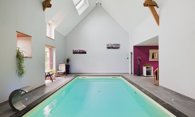 Enjoy your private garden, the uncovered terrace, and a private lawn surrounded by woods. The private indoor pool is heated all year round to 28°C and is reserved for you from 10 am to 9 pm or 10 pm depending on the season. You will also have access to shared toys and books for children as well as a communal tennis court.