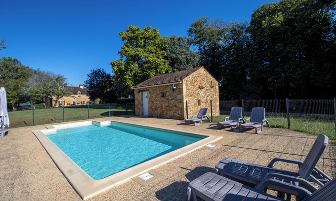 Charming stone house, typical of the region, rated 3 stars by the prefecture, accommodating up to 6 people. Adjoining another gîte, it shares a common pool while offering complete privacy due to its location facing the forest. Situated just 8 km from SARLAT and 4 km from CARLUX, in the heart of a large wooded park, this house guarantees comfort and tranquility, while being close to major tourist sites and the many activities available in our region (castles, caves, grottos, gardens, etc.).