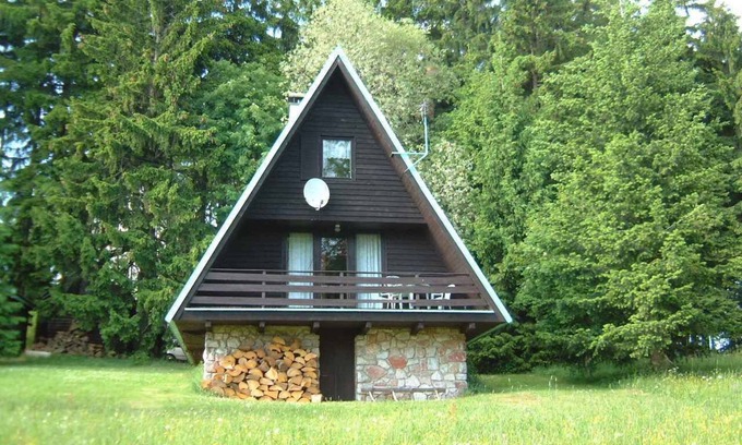 The detached holiday home is furnished in a functional style. The property is located in a holiday home settlement. Also due to its quiet location at the edge of the forest the domicile is popular. Available for your exclusive use: barbecue facilities and garden furniture. Sauna has a bathtub. Steep stairs.LocationStrážné, 810 m above sea level. The holiday home is located on a 400 sqm open plot. The landlord does not live in the house or on the property. This comfortably furnished holiday home has view to the surroundings. Access is via a side road (unpaved). Snow chains are recommended in winter. Parking (for 2 cars) is available on the street in front of the house and in a parking lot in the village (distance 1000 m, guarded). Access to the house only in summer or in winter with no snow possible. Parking in the summer on the property, in winter with snow on the central parking fee ( baggage transport is in the winter with snow by the proprietor organized ) SpecialElectric night storage heating TV reception takes place via satellite. WellnessSauna and solarium. Dogsallowed, EUR 20.00/pet per week. DistancesShopping 1000 m, restaurant 1000 m, town center 1000 m. indoor swimming pool in Jilemnice 12 km. discotheque in Vrchlabi 5 km. Vrchlabi with restaurants, bars , sightseeing flights , solarium and recreational possibilities 5 km. Bowling 12 km in Jilemnice. Spindleruv Mlyn with toboggan and water park 20 km. In summer: Bathing possibility 5 km in Vrchlabi. tennis in Strazne 1000 m.