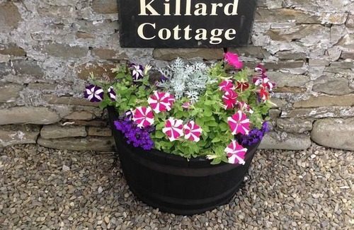This modern, detached cottage in an idyllic location with spectacular sea views, is an attractive choice for a seaside holiday. Set on Killard Hill, close to the owner’s home, this quaint cottage is within 5 minutes’ walk of the lovely secluded White Strand Beach. Renovated to a very good standard, it is a short drive from the beautiful Doughmore Beach. Doonbeg is an ideal location for fresh water fishing and sea angling. Killard Cottage is an ideal base to explore the beautiful coast of Clare and enjoy The Burren, Ailwee Caves, Cliffs of Moher and the Loop Head Peninsula. There is golf at Doonbeg and lovely cliff walks locally and in the nearby resort of Kilkee (10 minutes’ drive). Shops, restaurant and pubs 2 miles. Ground floor: Living/dining room/kitchen with beams and wooden floor. 1 double bedroom with en-suite shower room with toilet and steep, spiral stairs to connecting first floor single bedroom with Velux and sloping ceilings.Other leisure facilities: Paddle boating, Zorb ballsOther living room features (Living room1): Solid fuel stoveTVSelection of English and German reading booksNearby sports facilities: Fishing, Football area, Golf course, Canoeing, Climbing, Bike tours, Indoor riding arena, Riding possibilities, Rowing, Surfing, Diving, Sailing