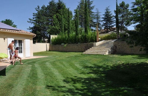 Comfortable, bright, modern and independent house that will allow you to discover all the flavours of Provence and the rich heritage of Vaison. The swimming pool is private, heated, secure and self-cleaning. There is a barbecue, deckchairs, a hammock, a Ping-Pong table, bicycles, and a big trampoline for children. For more security, the villa is entirely fenced. 2 bedrooms have a private shower room and a wall LCD television.