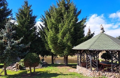 Outside, there is a spacious covered terrace where you can enjoy your morning coffee. The grounds of the property offer guests access to attractions such as a gazebo, barbecue, fire pit and pond, making moments spent outdoors unforgettable. In addition, there is garden furniture, deckchairs and fishing rods at guests' disposal - ideal for lovers of relaxing in nature.
