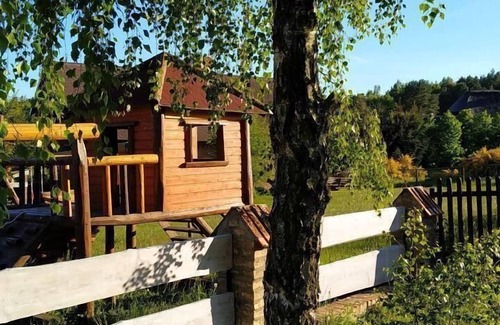 In the area there are three "twins" housesTwo of bricks and one of logs.A log house has its unique atmosphere of a country house with all the equipment you need to spend time with your family. Brick houses have their unique charm, brick adds warmth and character.Each segment of the cottage has a floor on which there are two bedrooms, one with three single beds, the other with one double and one single with balcony. At the bottom of the houses is a living room with kitchenette and bathroom. In the living room you can light a goat and have a good time on rainy evenings.At each house, guests have at their disposal a stone barbecue, wooden benches and deckchairs, which can be taken to the beach as well as bikes for the whole family;)The plot is vast, which makes our guests have space and freedom.We care for an intimate atmosphere far from populated and cramped facilities. We want you to take a break from a fast life in a quiet and safe environment.Every year we make changes for the better by listening to the suggestions of our guests.Do not wait and rest "Under Sumakiem"We invite you and wait;)Short description 1Number of kitchens : 1Garden and outdoorGarden facilities : GrillOutside area: Grill;House information: Bathrooms: 1; Bedroom;Living area: TV;Bath/WC: Toilet;Other: No internet; Pets allowed: max. 1;Distances (linear, approx.): Distance to the sea: 0,35 km;Garden and outdoorGarden facilities : GrillOutside area: Grill; House information: Bathrooms: 1; Bedroom; Living area: TV; Bath/WC: Toilet; Other: No internet; Pets allowed: max. 1; Distances (linear, approx.): Distance to the sea: 0,35 km;Garden and outdoorGarden facilities : Grill