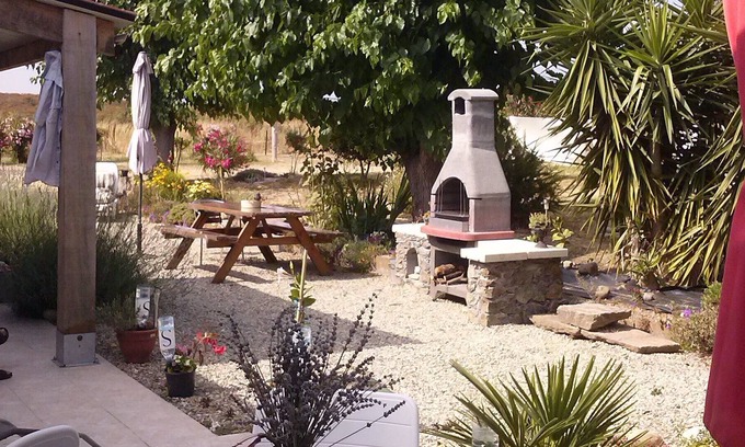 LARGE PRIVATE GARDEN PRIVATE TERRACE and equipped with a large wooden table in the garden, garden plastic chairs + lounge, two umbrellas, concrete barbecue, chairs, etc ... its exposure is to the east. You can take all your meals on your deck enjoying the view over the garden.