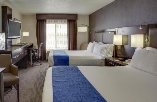 Adjacent to the Meadowlands Sports Complex and 10 miles from Times Square in Manhattan, this Carlstadt hotel features an indoor pool, a hot continental breakfast, and rooms with free Wi-Fi. Each of the rooms at the Meadowland Area Holiday Inn Express is decorated in warm colors and includes hardwood furniture. Guests can watch cable TV and pay-per-view movie channels or use the large work desk. A microwave, refrigerator, and coffee maker are provided. The on-site gym boasts full-length mirrors and mounted TVs. The front desk is open 24 hours a day and the business center is located off of the lobby. The Williams Center for the Arts is 2 miles from Holiday Inn Express Hotel & Suites Meadowlands Area. Liberty State Park and the Statue of Liberty are within 12 miles of the hotel.