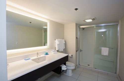 Recreational amenities at the hotel include an indoor pool and a 24-hour fitness center.