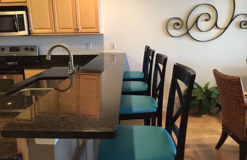 Holiday Isle Resort is a luxury resort offering upscale amenities including an outdoor pool, indoor pool, hot tub, steam room, sauna, tennis courts, a fitness center and a private boardwalk to the beach. Privacy and security are ensured at Holiday Isle from the gated entrance and night security patrol. Each unit has granite kitchen and bath countertops and high end appliances. Our condo has beautiful hardwood flooring & has been recently repainted and redecorated. The living room has a large flat screen TV as well as TVs in the master & queen guest bedroom. Cable, free WIFI, and local calls are included. Playing cards, puzzles and other games are provided for your enjoyment.