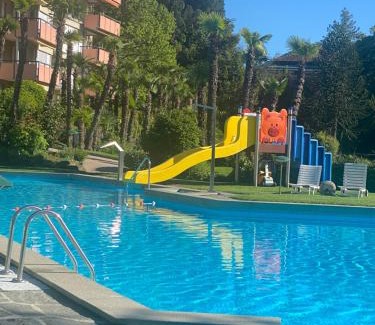 1.6 miles from Swiss Miniatur in Bissone, Holiday on the Lake Lugano provides accommodations with access to an open-air bath. This beachfront property offers access to a terrace, a pool table, free private parking, and free Wifi. The apartment has a private beach area and an electric vehicle charging station. The air-conditioned apartment consists of 1 bedroom, a living room, a fully equipped kitchen with a dishwasher and a coffee machine, and 1 bathroom with a bath and a hair dryer. Guests can take in the views of the mountain from the balcony, which also has outdoor furniture. The accommodation is non-smoking. There is an on-site bar. The apartment also offers a pool with a view and a fitness center for guests to relax in. For guests with children, Holiday on the Lake Lugano features kids pool and outdoor play equipment. The apartment has a picnic area where you can spend the day outdoors. Lugano Station is 6.2 miles from the accommodation, while Lugano Exhibition Center is 6.7 miles from the property.