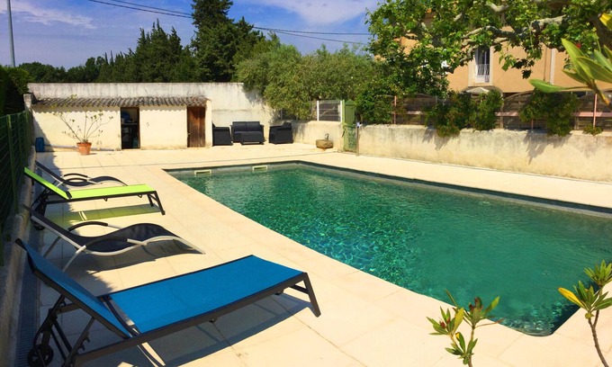 This pleasant holiday rental with a private swimming pool for 6 people is located in Bédarrides, near Avignon, between the village of Bédarrides (6 km) and the village of Sarrians (7 km), in the Vaucluse department in Provence.Stay in this charming part of a Provençal farmhouse offering an unobstructed view of Mont Ventoux, a tree-lined courtyard under a century-old plane tree, and a 75 m² interior with an authentic Provençal style for unique moments in ProvenceDuring your holidays in Bédarrides, charming commune nicknamed "The City of 7 Rivers", you will enjoy its historical heritage with the listed church and the Holy Cross Gate, while exploring the surrounding nature.Ideally located between Carpentras, Avignon and Orange, it will seduce nature lovers and fishermen.Do not miss the vineyards of Côtes du Rhône and Châteauneuf-du-Pape, perfect for discovering renowned wines.The neighbouring towns are Sorgues (5 km), Courthézon (6 km), Entraigues sur la Sorgue (7 km) and Châteauneuf du Pape (8 km).EXTERIORThis pleasant holiday rental with a private swimming pool has:A closed courtyard of 140 m², planted with a hundred-year-old plane tree, fitted with a covered relaxation area (20 m²) with a dining table that can accommodate 6 people, 1 wood-fired barbecue, 1 small freezer and a gas cooker.A pleasant private swimming pool (9x4m, depth of 1.40 m), benefiting from a beautiful view of MONT VENTOUX, enclosed by non-approved barriers.In service from 1st June to 30th September.SunbedsINTERIORThis holiday rental with swimming pool in Bedarrides has an area of 75 m².She is decorated in a traditional Provençal style.There are beautiful Provençal ceilings giving a certain charm. All rooms are air-conditioned.GROUND FLOOR:A kitchen (5 m²) equipped with a fridge, a cooker with integrated oven, a microwave oven, a toaster, a filter coffee machine and a kettle.A cellar with washing machine and toiletA living room (25 m²) with TV, fireplace, a sofa bed for 2 people and a dining areaAn independent toilet with a hand basin.1st FLOOR:1 bedroom (12 m²) with a double bed 140 and its adjoining bathroom (shower, 1 washbasin and WC)1 bedroom (11.5 m²) with two beds 90 bathroom on the landing of the second bedroom with shower, 1 washbasin and WC.Maximum sleeping capacity: 6 peopleEnd of stay cleaning: 80 €Sheets, tea towels, tablecloths, and hand and bath towels included.It is necessary to bring your pool towelsDeposit: 300 €.Pets allowed with a supplement of 35€/animal.Electricity as an additional charge according to meter readings during low season (From the second half of September until the second week of June inclusive).Tourist tax according to the current rate.ECO-GESTUREOwners sort recyclable wasteOwners use low-consumption light bulbsACCESSIBILITYThis location is not accessible to people with reduced mobility. All rooms and sanitary facilities are on the upper floor