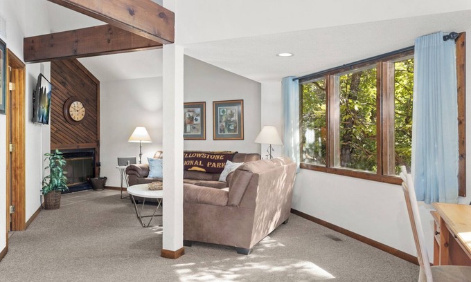 Upstairs is a loft bedroom complete with Queen bed, hanging space and a half bath. Downstairs features the last bedroom with a Queen bed, private bathroom with standing shower and small sitting deck. Living room includes a Queen sofa sleeper making this home sleep up to 8 guests.