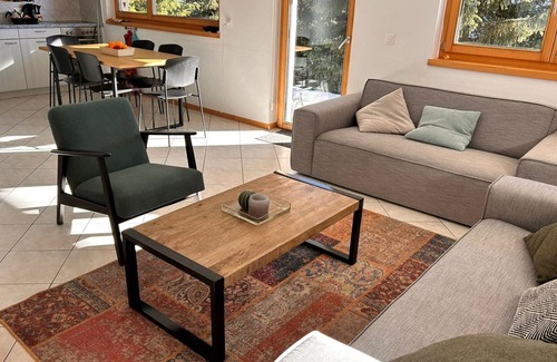 The new three-story house Bettmerlodge, located in the Alpmatte district, is situated at the edge of the forest on a sunny southern slope – ideal for wonderful summer holidays. The bright ground-floor apartment is tastefully furnished and features a dishwasher and washing machine. Additionally, there are two terraces (facing south and west) with a flower meadow and a garden grill.