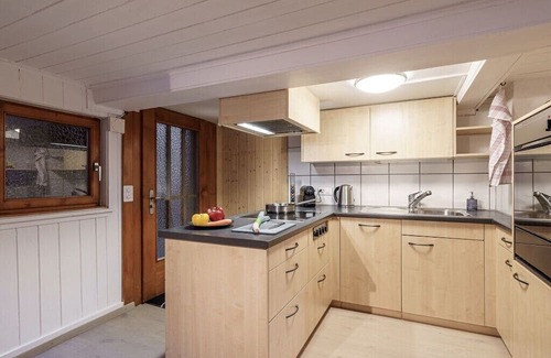 The apartment is located in the heart of Brienz, right on the famous Brunngasse. It features four bedrooms with two double beds (160x200cm) and two single beds (90x200cm), a large living room, a fully equipped kitchen, and a bathroom.