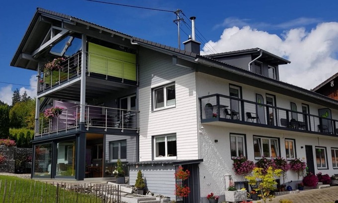 Our house is located in the small, quiet area of Freundpolz, 10 km from Immenstadt at an altitude of over 1000 m. The apartment is cozy and modern and is located on the 1st Floor on the south side of the house. You can enjoy the mountain view from all rooms with direct access to the balcony. Two large balconies allow you to spend the whole day outdoors from sunrise to sunset!
