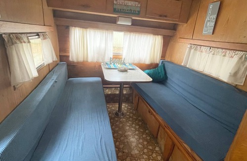 You will love Holly's vibe - she is the cutest tuna can camper you have ever seen. She came to be in 1969 and has traveled around plenty with her former owner. She has been on Camano Island for many years. She moved over the The Camano Log House to be an extra sleeping space for those who rent the log house or who use The Gather Barn for a wedding or event. She is cute and is meant to be a crash pad for 1 (possibly 2) people while visiting the island. Her view of the trees and cows across the street is so relaxing. You will love having a home base on our beautiful island!