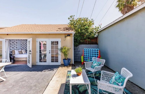 Our bright, private guesthouse is just 2 miles (8 min) from Universal Studios—perfect for couples, solo travelers, business guests, families, and furry friends! Enjoy a peaceful, detached studio with its own gated entrance and private parking just steps from your door—a rare find in LA! While our guesthouse does not have a kitchen or AC, it stays naturally cool with fans provided, and you'll find amazing dining options just minutes away.