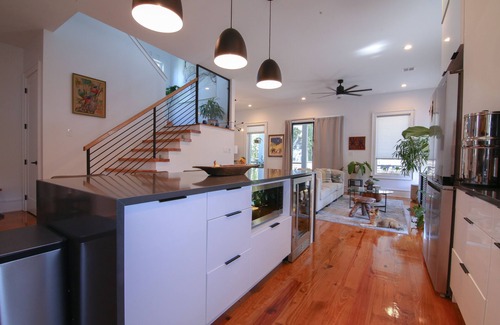 Experience New Orleans in Historic Holy Cross! This light-filled contemporary home features a private saltwater pool and spa, full gourmet kitchen, off street parking, 3 spacious bedrooms and multiple porches. 3rd bedroom also doubles as an office space. Minutes away from Bywater, Marigny, French Quarter and one block from the Mississippi River Greenway. Your New Orleans home away from home awaits!