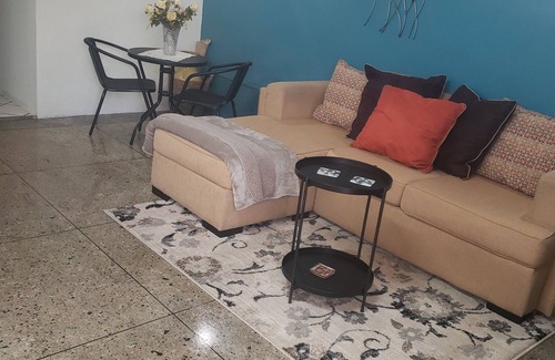 Stay comfortably in this wheelchair accessible, 3-bedroom private apartment in Arima. Cameras and lightings are placed strategically externally around the apartment. The bedrooms feature 1 full bed, 1 queen bed, and 1 twin bed, ensuring a fabulous night's sleep for all guests. One spacious full bathroom and one half- bath. Enjoy the soothing ambiance of the space, complete with amenities like WiFi, television withNetflix, iron and ironboard and multiple air conditioners. The full bathroom comes equipped with a hairdryer and a built-in seat in the shower/ tub for guests whom may require such accessibility. There are multiple cupboards in all areas for your convenience. The kitchen is equipped with a microwave oven. gas powered stove and refrigerator.