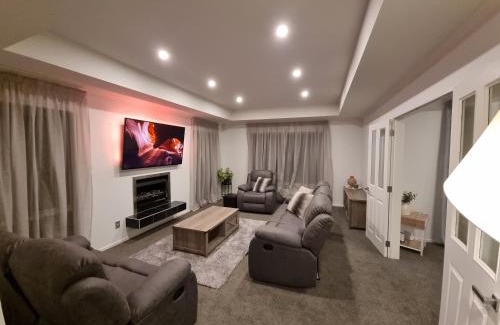 Featuring a garden, Home away from home in Rolleston offers accommodations in Rolleston. The air-conditioned accommodation is 14 miles from Christchurch Railway Station, and guests can benefit from private parking available on site and free Wifi. The accommodation features private check-in and check-out and bicycle parking for guests. Providing a terrace and garden views, the spacious vacation home includes 4 bedrooms, 2 living rooms, flat-screen TV, an equipped kitchen, and 2 bathrooms with a bath and a shower. This vacation home also offers a patio that doubles up as an outdoor dining area. A dressing room, laundry service, and full-day security are also available. Guests can make the most of the warm weather with the property's barbecue facilities. For guests with children, the vacation home provides an indoor play area. If you like to discover the area, skiing, cycling and hiking are possible in the surroundings and Home away from home in Rolleston can arrange a ski equipment rental service. Orana Wildlife Park is 14 miles from the accommodation, while Christchurch Art Gallery is 15 miles away. Christchurch International Airport is 10 miles from the property.