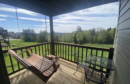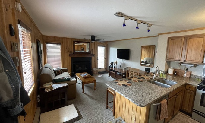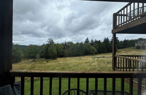 Mountainside getaway for family, friends, and furry loved ones just steps away from the Powderidge Lift! Our home is your home, offering access to all required amenities for a family affair on the slopes or trails including in-unit washer/dryer, mudroom for your gear, a wood-burning fireplace to kick up your feet next to after a long day, a remodeled bathroom, and two comfy queen beds (one sleeper sofa). Wake up with a cup of joe to a beautiful mountain sunrise to do it all over again :)