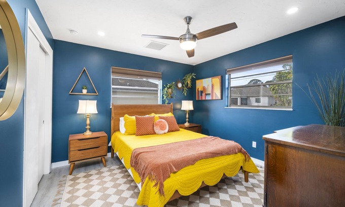 Featuring a king size bed in the master and a queen in the guest room, you'll get a restful night sleep in our large and comfortable beds outfitted with high-quality linens. Both rooms have light-blocking window shades and ceiling fans.