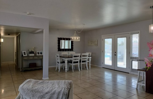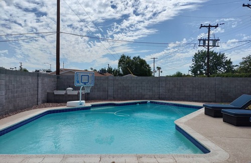 1600 sq', large open area with Kitchen, dining room, and living room. Doggie door for your favorite pet! Shower in master suite. Washer and dryer separate from main house. Blue Pool with hoop. Close to major highways and light rail to sports stadiums.