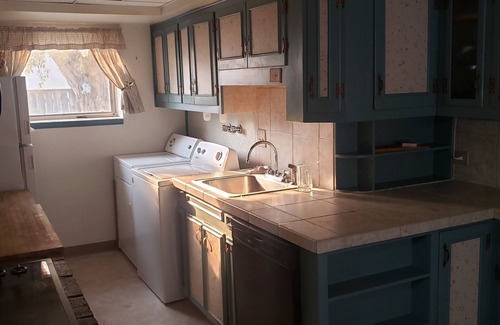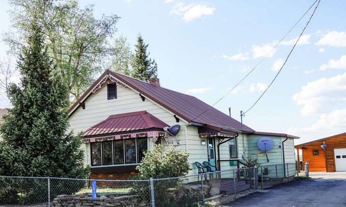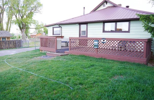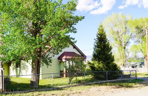 Single family home, 1 floor with 2 bedroom 1 bath. Has full kitchen, washer and dryer. If need an extra bed there is a small cabin just a skip from the house with a bunk bed. heated garage is available also. Great view of the east range. Furnished back patio, fire pit, and horseshoes. Plenty of room to enjoy your privacy without noisy neighbors. Walking distance into local restaurants and bars.