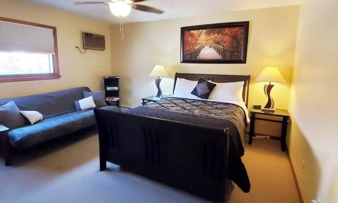 Enjoy the comforts of home in this first floor, private 2-bedroom condo in the SW Chicago Suburbs. Enjoy your morning coffee on the outside patio. We offer all the kitchen and bathroom amenities you need for a comfortable stay. There are two queen beds, full-size futon, full-size sofabed, and a very comfy couch your sleeping comfort. Enjoy plush towels, plus lots of pillows and blankets. We are near Moraine Valley Community College, Stagg High School, Palos Community Hospital, many forest preserves & trails, golf courses, and much more...